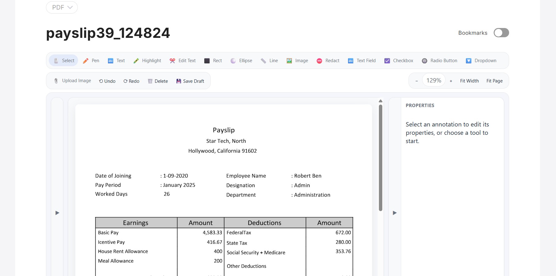 To edit a PDF template, Dock offers a specialized PDF editor with a plethora of features to create and customize the template: